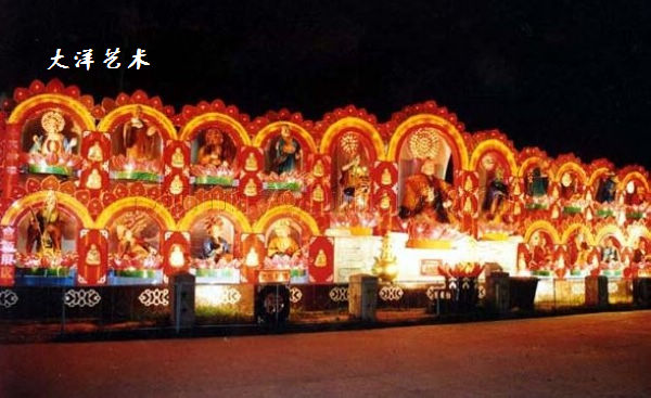 规格尺寸;9M×4M×6M。;主要材料;钢材、绢绸、电子控制元件、美术装饰材料等组成。 ;动作说明;追光闪烁、背景音乐。