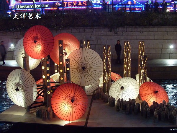规格尺寸;9M×3M×3M。;主要材料;钢材、绢绸、电子控制元件、美术装饰材料等组成。 ;动作说明;追光闪烁、背景音乐。