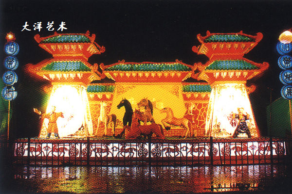 规格尺寸;9M×4M×6M。;主要材料;钢材、绢绸、电子控制元件、美术装饰材料等组成。;动作说明;追光闪烁、背景音乐。
