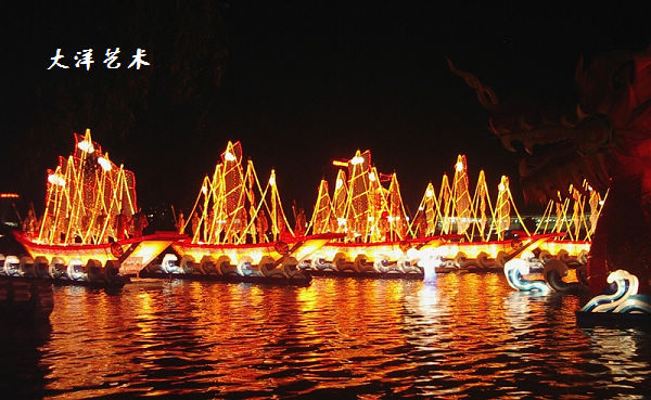 规格尺寸;30M×10M×8M。;主要材料;钢材、绢绸、电子控制元件、美术装饰材料等组成。 ;动作说明;追光闪烁、背景音乐。