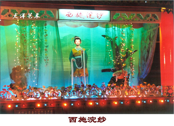 规格尺寸;9M×4M×6M。;主要材料;钢材、绢绸、电子控制元件、美术装饰材料等组成。;动作说明;人物前后动、追光闪烁、背景音乐。